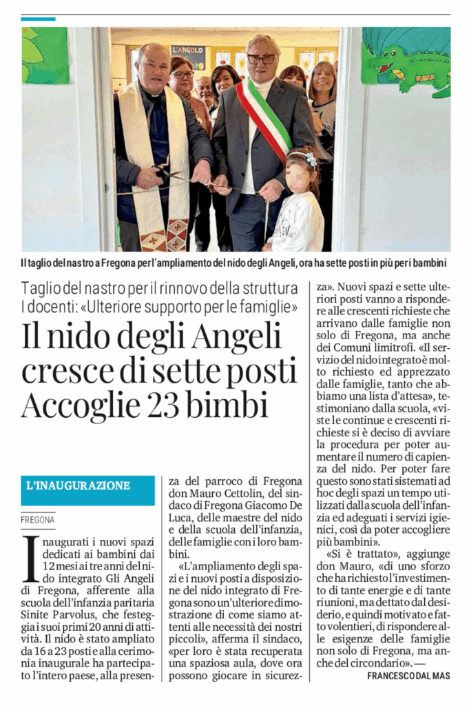 Rassegna stampa del 03.12.2025 – La Tribuna 3 Dicembre 2025 Taglio del nastro per il rinnovo della struttura Il nido degli Angeli di Fregona