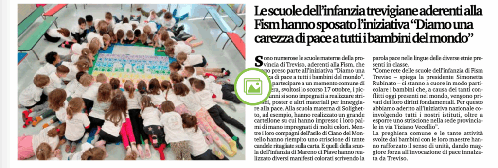 Le scuole dell’infanzia trevigiane aderenti alla Fism hanno sposato l’iniziativa “Diamo una carezza di pace a tutti i bambini del mondo”